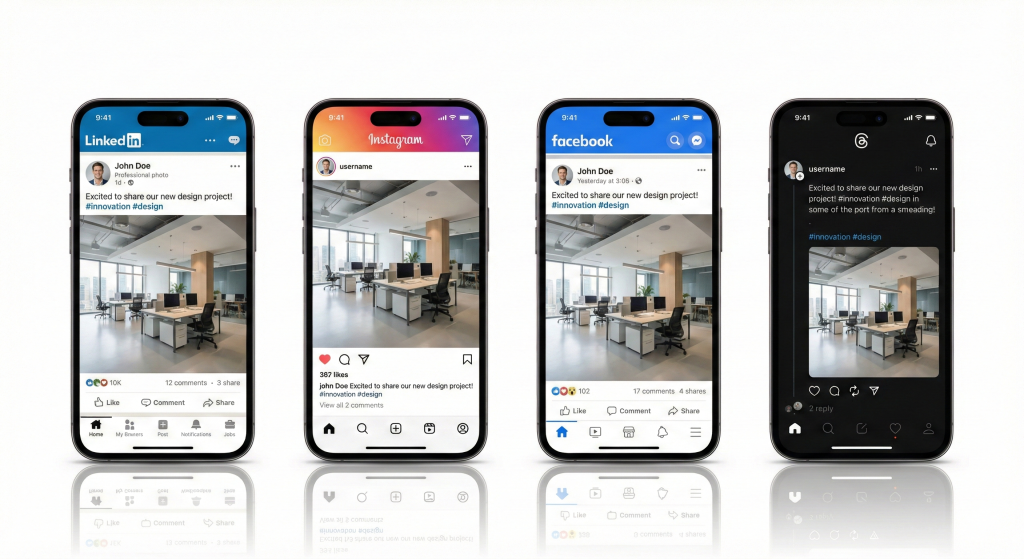 好不容易擠出一篇貼文,卻要在 LinkedIn、Facebook、Instagram、Threads 之間反覆複製貼上,還要手動調整語氣?專業的 LinkedIn 要穩重、IG 要活潑、Threads 要隨性⋯⋯光想就累了。