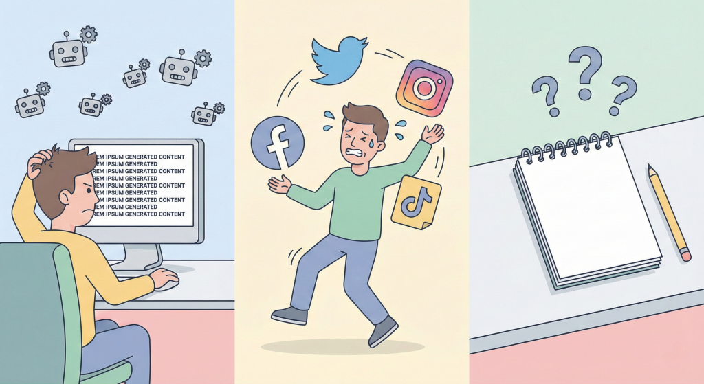 更可怕的是,當你終於寫完按下發布,卻發現文案讀起來「很 AI」——那種充滿「在這個快節奏的時代」、「你是否曾想過」的罐頭感,連自己都不想讀完。